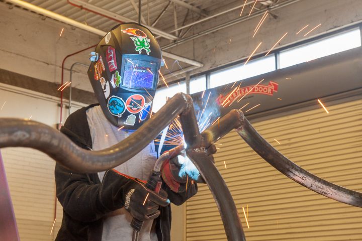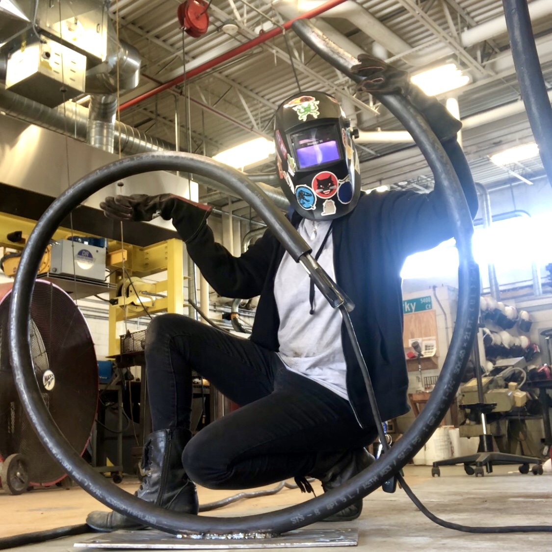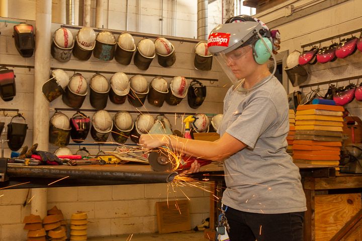 Olivia creates many of her works through industrial processes such as welding, grinding, cutting, casting and bending.