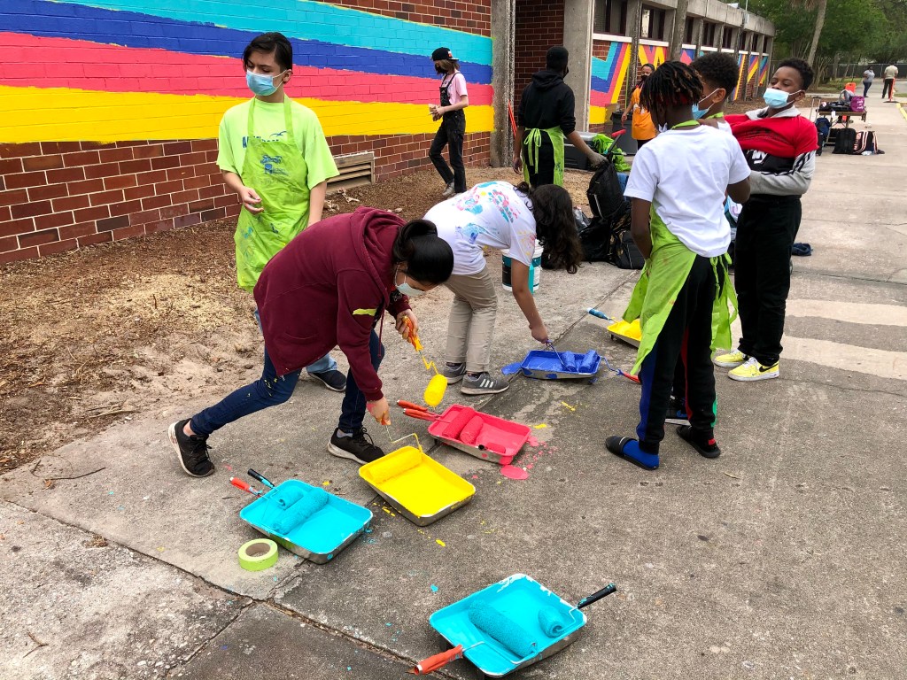 As an art teacher, Olivia Warro helped to create a mural on the exterior of Fort Caroline Middle School. This mural allowed for her students to get involved in a real public art project through guided group participation.