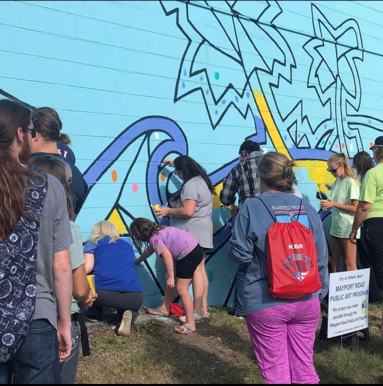 As an partner of Word Revolt, Olivia Warro helped the gallery with a mural project along Mayport road. This project was open to the public and allowed the community to get involved in large-scale artwork.